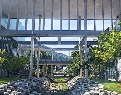 건축적으로도 단정하면서도 현대적인 미가 돋보이며, 잔잔한 정원과 연못이 트레킹 전 몸과 마음을 가다듬기에 좋다.