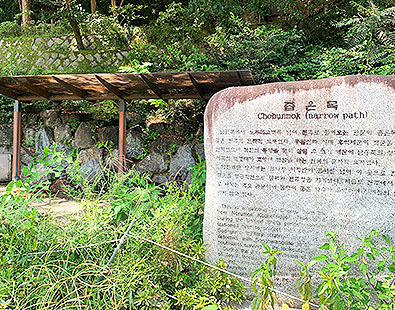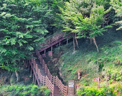이름 그대로 여름이면 바위 위에 초록 이끼와 덩굴이 자라며 생명감 넘치는 풍경을 만들어내는 초록바위는 마실길의 감성 포인트 중 하나다. 계절마다 다르게 피어나는 풀과 나무들이 만들어내는 색채감도 매력적이며, 여름엔 그 이름처럼 초록의 생명이 가득한 절벽이지만, 그 풍경 아래에는 깊고 무거운 이야기가 깃들어 있다.